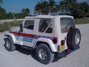 MAKE A MEME View Large Image Jeep TJ Miami Beach Ocean Rescue R.jpg Jeep In Miami Beach Florida - rear view of the Ocean Rescue vehicle on the beach City of Miami Beach Fire and Rescue Department own 2009-12-28 CZmarlin ” Christopher Ziemnowicz releases all rights but ...