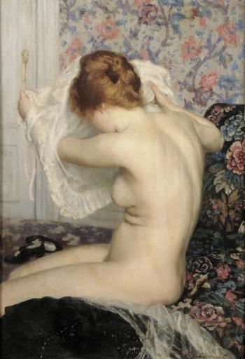 | Keywords: Jef Leempoels - Taking off her shirt.jpg Artwork Creator Jef Leempoels 1890-1935 oil on canvas Size cm 50 35 object history exhibition history credit line http //belgianpaintings tumblr com/tagged/Jef-Leempoels Signed Private collection accession number PD-old-70 Jef Leempoels Paintings of nude sitting females Undressing in art |