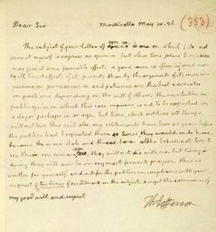 | Keywords: Jefferson Heaton letter 1826.jpg <big>Thomas Jefferson</big> to <big>James Heaton</big> May 20 1826 ---- <big>Jefferson's public silence on slavery </big><br> In a letter to James Heaton Whig state representative from Ohio Thomas Jefferson explained his public stance on slavery Near the end of his life Jefferson justified his inaction for trying to end slavery during his presidency with the following explanation in a letter to James Heaton <ref> cite web Library of Congress Thomas Jefferson Legacy July 25 2014 http //www loc gov/exhibits/jefferson/jeffleg html </ref><br><br> <big>DEAR SIR -- Monticello May 20 26<br><br>The subject of your letter of April 20 is one on which I do not<br>permit myself to express an opinion but when time place and occasion<br>may give it some favorable effect A good cause is often injured more<br> by ill-timed efforts of its friends than by the arguments of its enemies <br>Persuasion perseverance and patience are the best advocates<br>on questions depending on the will of others The revolution in<br>public opinion which this cause requires is not to be expected in<br>a day or perhaps in an age; but time which outlives all things <br>will outlive this evil also My sentiments have been forty years before<br>the public Had I repeated them forty times they would only have<br>become the more stale and threadbare Although I shall not live to<br>see them consummated they will not die with me; but living or<br>dying they will ever be in my most fervent prayer This is<br>written for yourself and not for the public in compliance with your<br>request of two lines of sentiment on the subject Accept the assurance of<br>my good will and respect </big><br> -- <big>Thomas Jefferson </big><br><br> <small>Note</small> <references/> ---- May 20 1826 Library of Congress Thomas Jefferson PD-Art PD-old-100 Uploaded with UploadWizard Letters by Thomas Jefferson Letters of the United States |