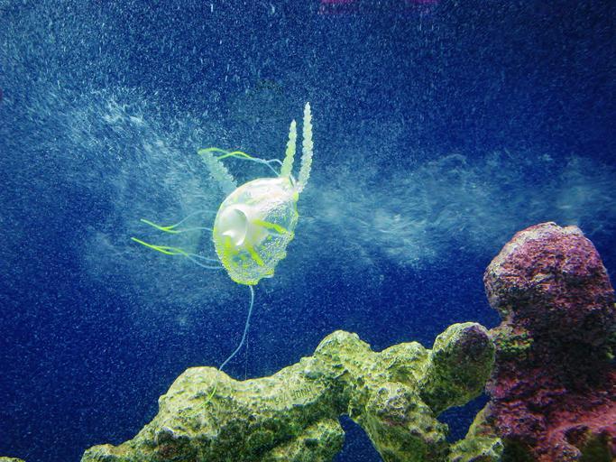 Keywords: jellyfish blue aquarium animal creature underwater marine aquatic
