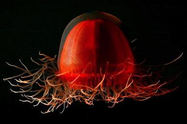 Keywords: jellyfish life red unique beautiful close-up macro sea ocean water underwater
