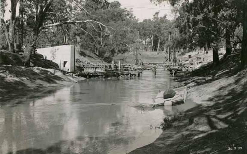 | Keywords: archives state records nsw staterecordsnsw newsouthwales blackandwhite water weir reservoir dam trees lachlan river lachlanriver jemalong weir jemalongweir river construction forbes central west centralwest outdoor watercourse black and white Construction of the Jemalong Weir on the Lachlan River Dated: 30 March 1939 Digital ID: 12932-a012-a012X2447000028 Rights: www.records.nsw.gov.au/about-us/rights-and-permissions We'd love to hear from you if you use our photos. Many other photos in our collection are available to view and browse on our website using Photo Investigator. Construction of the Jemalong Weir on the Lachlan River Dated: 30 March 1939 Digital ID: 12932-a012-a012X2447000028 Rights: www.records.nsw.gov.au/about-us/rights-and-permissions We'd love to hear from you if you use our photos. Many other photos in our collection are available to view and browse on our website using Photo Investigator. |