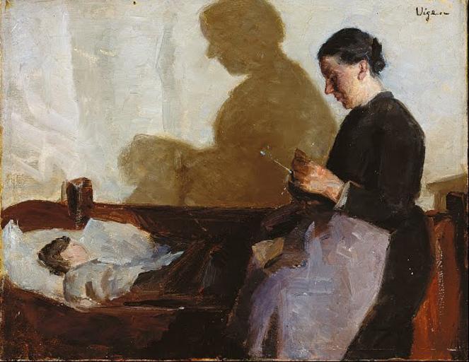 | Keywords: Jens Vige - Woman knitting at her child's bedside - Google Art Project.jpg commons date commons medium commons dimensions commons institution Institution Skagens Museum commons location commons references commons object_history commons exhibition_history commons credit_line commons inscriptions commons notes commons accession_number commons source commons permission commons other_versions commons zoom core title Woman knitting at her child's bedside core date dateCreated 1888/1891 core format w45 x h36 cm Without frame core type Oil on canvas core rights Skagens Museum art artist_date 1864-05-11/1912-03-20 art artist_nationality Danish c-0d8a08e5 customtext original_title Strikkende kone ved sit barns seng c-0d8a08e5 customtext german_title Strickende Frau am Bett des Kindes c-0d8a08e5 creator painter Jens Vige google display_date 1888/1891 google is_artproject TRUE google is_gigapixel FALSE google is_secured TRUE google street_view_asset/id EgG8_cSw-IrjfQ google street_view_level/id 6291987383502185979 google street_view_location 57 724689483642578 10 59736156463623 1 3200000524520874 ZGu9b5mNRZo26n41pgqKbw google partner/id 000000000d8a08e5 google picasa_token IkNYBUi7Mz7kuhFVAfb2zs3bTBY special url_id DAGGdGOBxpdSyg google partner/name Skagens Museum special partner/name_no_lang Skagens Museum PD-old-100-1923 1912 Google Art Project works by Jens Vige Paintings of women sewing indoors Jens Vige |