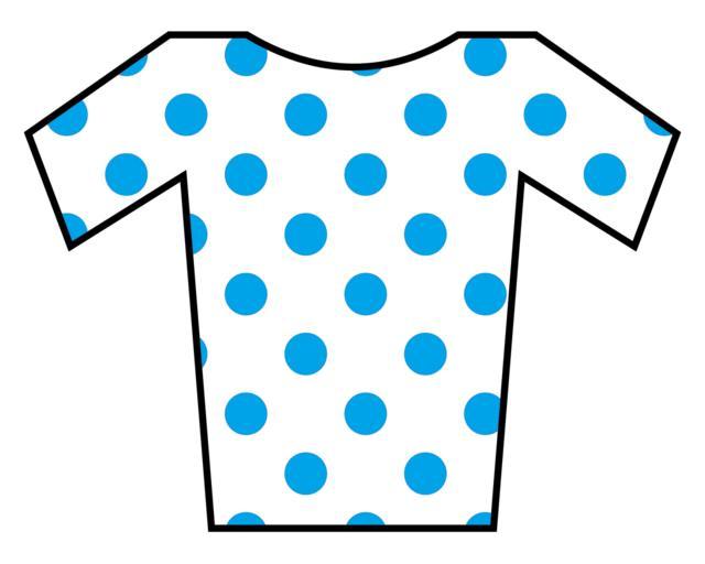 Keywords: Jersey blue dot.png en Differenty colored cycling jerseys as used in different cycling contests blue dot jersey Used by mountain climbing leader in Vuelta a España own Jazin 2010-08-30 Polka dot cycling jerseys