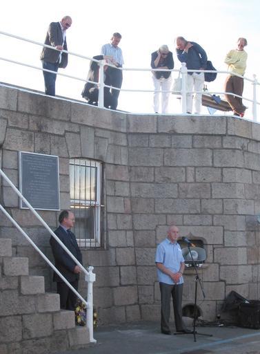 | Keywords: Jersey WWII 28 June 1940 bombing commemoration 3.jpg 28 d'Juîn 2010 En mémouaithe d'la bombardéthie Allemande du 28 d'Juîn 1940 - y'a septante ans - et des victînmes Saint Hélyi Jèrri 28 June 2010 70th anniversary commemoration of the German bombardment of 28 June 1940 - and of the victims Saint Helier harbour Jersey Eyewitness account by Hedley Guillaume - guests hang from harbour railings to listen Simon Crowcroft Connétable of Saint Helier watching self-photographed 2010-06-28 Man vyi Own work all rights released Public domain ImageNote 1 123 1072 303 376 1805 2451 2 On the evening of 28th June 1940 Heinkel Aircraft of the German Air Force attacked the St Helier Harbour in an attempt to test the defences of the Island this plaque was unveiled on 28th June 1990 in memory of Mr John Philip Mauger Mr Harold Frederick Hobbs Mr Robert Bunting Fallis Mr Godfray William Adolph Coleman Mr Leslie Charles Henry Bryan Mr Edward Henry Ferrand Mr William Charles Moody Mr Arthur William Parr who lost their lives as a result of this raid ImageNoteEnd 1 Plaques in Saint Helier Jersey Commemoration of 28 June 1940 German attack against Jersey June 2010 in Jersey War memorials in Jersey 2010 in Saint Helier Jersey People of Jersey in 2010 Albert Pier Jersey Stairs in Jersey Waterfront railings Simon Crowcroft People looking down |