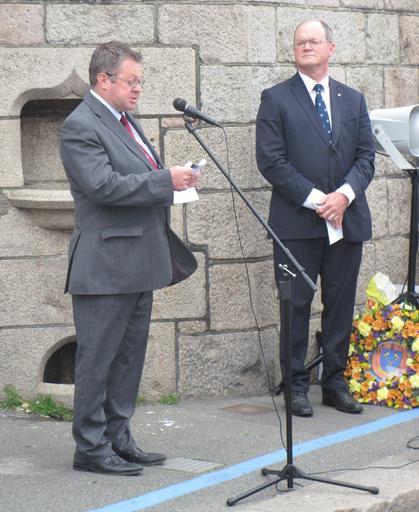 | Keywords: Jersey WWII 28 June 1940 bombing commemoration 2013 04.jpg 28 d'Juîn 2013 En mémouaithe d'la bombardéthie Allemande du 28 d'Juîn 1940 et des victînmes Saint Hélyi Jèrri 28 June 2013 Anniversary commemoration of the German bombardment of 28 June 1940 - and of the victims Saint Helier harbour Jersey own photo 2013-06-28 17 21 22 Man vyi Commemoration of 28 June 1940 German attack against Jersey Memorial wreaths Simon Crowcroft People of Jersey in 2013 June 2013 in Jersey Albert Pier Jersey 2013 in Saint Helier Jersey |
