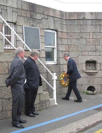 | Keywords: Jersey WWII 28 June 1940 bombing commemoration 2013 17.jpg 28 d'Juîn 2013 En mémouaithe d'la bombardéthie Allemande du 28 d'Juîn 1940 et des victînmes Saint Hélyi Jèrri 28 June 2013 Anniversary commemoration of the German bombardment of 28 June 1940 - and of the victims Saint Helier harbour Jersey own photo 2013-06-28 17 41 59 Man vyi ImageNote 1 533 601 439 601 2420 3134 2 On the evening of 28th June 1940 Heinkel Aircraft of the German Air Force attacked the St Helier Harbour in an attempt to test the defences of the Island this plaque was unveiled on 28th June 1990 in memory of Mr John Philip Mauger Mr Harold Frederick Hobbs Mr Robert Bunting Fallis Mr Godfray William Adolph Coleman Mr Leslie Charles Henry Bryan Mr Edward Henry Ferrand Mr William Charles Moody Mr Arthur William Parr who lost their lives as a result of this raid ImageNoteEnd 1 Commemoration of 28 June 1940 German attack against Jersey Memorial wreaths Stairs in Jersey Simon Crowcroft People of Jersey in 2013 John Nettles June 2013 in Jersey Albert Pier Jersey 2013 in Saint Helier Jersey Plaques in Saint Helier Jersey |