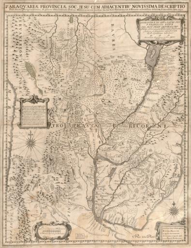 Keywords: Jesuit Province Paraguay 1732 map.png en Map 66 x 52 cm in Latin with some place names in Spanish showing the Jesuit province of Paraguay and neighbouring areas with the main missions and missionary journeys The map was made in Rome by Giovanni Petroschi 1715-66 and is dedicated to Francisco Retz 1673-1750 Superior General of the Society of Jesus la Paraguariæ Provinciæ soc jesu cum adiacentibg novissima descriptio post iteratas peregrinationes plures observationes patrum missionariorum eiusdem soc tum huius provinciæ cum Peruanæ accuratissime delineata emendata ann 1732 / admodum r in cht o patri suo P Francisco Retz soc jesu præp generali XV hanc terrarum filiorum suorum sudore et sanguine excultarum et rigatarum tabulam ; D D D provincia paraquariæ soc jesu anno 1732 ; Ioannes Petroschi sculp Romæ sup perm ann 1732 Library of Congress Geography and Map Division Washington D C 20540-4650 USA http //memory loc gov/cgi-bin/query/r ammem/gmd field NUMBER+ band g5200+br000088 Giovanni Petroschi 1732 PD-old-100 Old maps of Paraguay Old maps of Uruguay Jesuit Missions 1732 Jesuit Reductions Jesuit Missions of the Chiquitos Old maps of Bolivia