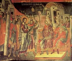 Keywords: Jesus before Pontius Pilate - Stavronikita monastery, Mt Athos - Theophanes of Crete, 16th c..jpg Artwork Creator Theophanes The Cretan el Ο Χριστός ρο του Πόντιου Πιλάτου - ονή Σταυρονικήτα Άγιο Όρος - Έργο του Θεοφάνη του Κρητικού Θεοφάνης αθάς Στρελίτζας - 1546 en Jesus before Pontius Pilate - Stavronikita monastery Mt Athos - Theophanes of Crete 1546 2015-04-14 http //pravoslavieto com/history/16/1559_Theophanes_Cretan/index htm Unknown other versions Custom license marker 2015 04 14 PD-old-100 Theophanes the Cretan Halo religious iconography Stavronikita monastery Uploaded with UploadWizard Frescos of Christ before Pilate |