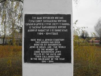 Keywords: Jewish cemetery Baranovichi st Chernyshevskogo 2d.jpg ru Ев ейское кладбище в Ба ановичах Действовало с 1923 года до Вто ой ми овой войны Сейчас на те ито ии кладбища азбит скве в память 12 000 ба ановичских ев еев убитых нацистами 2011-11-13 own Vadim Akopyan cc-zero Uploaded with UploadWizard Jewish cemeteries in Baranavičy Holocaust memorials in Baranavičy