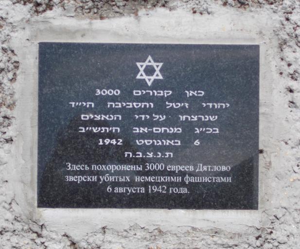 | Keywords: Jewish cemetery in Dyatlovo 3c.jpg ru Ев ейское кладбище в Дятлово Г одненская область аходится между улицами Октяб ьская Гага ина и Булата а этом кладбище стоят памятники 3000 ев еям Дятлово убитым на этом месте 6 августа 1942 года 54 ев еям из де евни Дво ец убитым нацистами в 1942 году и похо оненным здесь а также место захо онения п аха ев ея-па тизана Ескеля Атласа 2014-05-11 10 26 04 own Avner 53 455621 25 406814 cc-zero Jewish cemetery in Dyatlovo Uploaded with UploadWizard Ghetto Dyatlovo |
