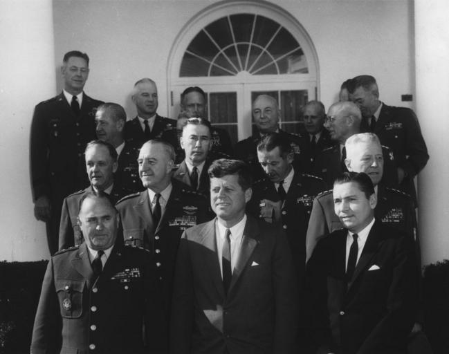 | Keywords: JFKWHP-AR6922-A.jpg en President John F Kennedy visits with United States Army Commanders Standing in the first row L-R Chief of Staff of the United States Army General George H Decker; President Kennedy; and Elvis Stahr Secretary of the Army Second row L-R General Herbert B Powell; General Bruce C Clarke Third row L-R Lieutenant General Emerson L Cummings; Lieutenant General Donald P Booth; General James F Collins Back rows L-R Major General Theodore F Bogart; General Clyde D Eddleman; Major General John H Michaelis; Lieutenant General Edward J O ™Neill mostly hidden by Lt General Booth ; Lieutenant General Thomas H J Trapnell; Lieutenant General Ridgely Gaither; Major General Paul A Gavan; General Guy S Meloy; two unidentified men Rose Garden White House Washington D C 30 November 1961 2014-05-03 11 58 47 http //www jfklibrary org/Asset-Viewer/Archives/JFKWHP-AR6922-A aspx Abbie Rowe White House Photographs John F Kennedy Presidential Library and Museum Boston PD-USGov Uploaded with UploadWizard George H Decker John F Kennedy Jr |