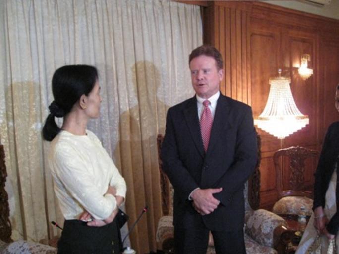 | Keywords: Jim Webb with Aung San Suu Kyi.jpg en Senator Jim Webb D-VA meets with Nobel Peace Prize Laureate Aung San Suu Kyi http //webb senate gov/photos/photogallery/2009_Asia_CODEL cfm Office of Senator Jim Webb 2009-08-15 Jim Webb Aung San Suu Kyi PD-USGov |