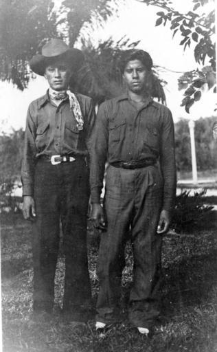 Keywords: florida seminoles everglades state library and archives of florida statelibraryandarchivesofflorida blackandwhite monochrome outdoor black and white Local call number: BD034 Title: [Jimmie Cypress and Big Charlie Osceola] Date: Photographed in April of 1943. Physical descrip: 1 photograph : b&w ; 5 x 7 in. Series Title: (Bedell Collection.) General Note: Photograph of a postcard. Repository: State Library and Archives of Florida, 500 S. Bronough St., Tallahassee, FL 32399-0250 USA. Contact: 850-245-6700. Archives@dos.state.fl.us Persistent URL: www.floridamemory.com/items/show/63702 Local call number: BD034 Title: [Jimmie Cypress and Big Charlie Osceola] Date: Photographed in April of 1943. Physical descrip: 1 photograph : b&w ; 5 x 7 in. Series Title: (Bedell Collection.) General Note: Photograph of a postcard. Repository: State Library and Archives of Florida, 500 S. Bronough St., Tallahassee, FL 32399-0250 USA. Contact: 850-245-6700. Archives@dos.state.fl.us Persistent URL: www.floridamemory.com/items/show/63702