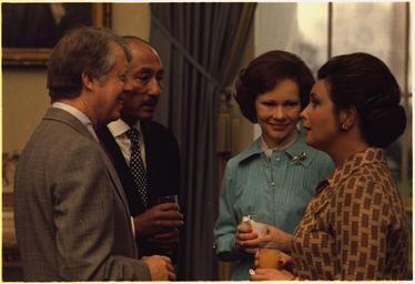Keywords: Jimmy Carter, President of Egypt Anwar Sadat, Rosalynn Carter and Mrs. Jihan Sadat. - NARA - 174261.tif Scope and content General notes 174261 Local identifier President 1977-1981 Carter White House Staff Photographers 01/20/1977 - 01/20/1981 Jimmy Carter Library NLJC 441 Freedom Parkway Atlanta GA 30307-1498 1977-04-04 Record group Collection JC-WHSP Carter White House Photographs Collection 01/20/1977 - 01/22/1981 Record group ARC 1120 Carter White House Photographs Presidential compiled 01/20/1977 - 01/22/1981 Series ARC 173341 File unit Arrival Ceremony for President Sadat of Egypt 04/04/1977 - 04/04/1977 File unit ARC 174260 Variant control numbers NAIL Control Number NLC-WHSP-C-00866-18 yes Other versions NARA-cooperation PD-USGov Jehan Al Sadat Rosalynn and Jimmy Carter Jimmy Carter and Anwar Sadat Anwar Sadat |