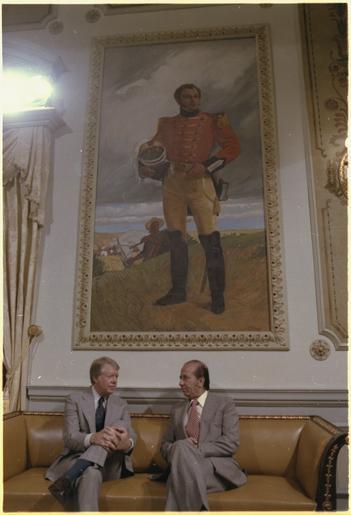 Keywords: Jimmy Carter visits with President Carlos Perez - NARA - 178564.tif Scope and content General notes 178564 Local identifier President 1977-1981 Carter White House Staff Photographers 01/20/1977 - 01/20/1981 Jimmy Carter Library NLJC 441 Freedom Parkway Atlanta GA 30307-1498 1978-03-29 Record group Collection JC-WHSP Carter White House Photographs Collection 01/20/1977 - 01/22/1981 Record group ARC 1120 Carter White House Photographs Presidential compiled 01/20/1977 - 01/22/1981 Series ARC 173341 File unit Jimmy Carter Rosalynn Carter Amy Carter - Caracas Venezuela 03/29/1978 - 03/29/1978 File unit ARC 178563 Variant control numbers NAIL Control Number NLC-WHSP-C-04909-29 yes Other versions NARA-cooperation PD-USGov Carlos Andrés Pérez Relations of the United States and Venezuela Rosalynn and Jimmy Carter |