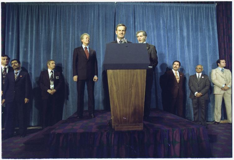 Keywords: Jimmy Carter with Hafiz al-Asad President of Syria in Geneva, Switzerland - NARA - 174644.tif Scope and content General notes 174644 Local identifier President 1977-1981 Carter White House Staff Photographers 01/20/1977 - 01/20/1981 Jimmy Carter Library NLJC 441 Freedom Parkway Atlanta GA 30307-1498 1977-05-09 Record group Collection JC-WHSP Carter White House Photographs Collection 01/20/1977 - 01/22/1981 Record group ARC 1120 Carter White House Photographs Presidential compiled 01/20/1977 - 01/22/1981 Series ARC 173341 File unit The President's trip to London England and Geneva Switerland 05/09/1977 - 05/09/1977 File unit ARC 174643 Variant control numbers NAIL Control Number NLC-WHSP-C-01235-5A yes Other versions <gallery>File Jimmy Carter with Hafiz al-Asad President of Syria in Geneva Switzerland - NARA - 174644 jpg Cropped JPG</gallery> NARA-cooperation PD-USGov Hafez al-Assad Jimmy Carter with national leaders NARA TIF images with categorized JPGs |