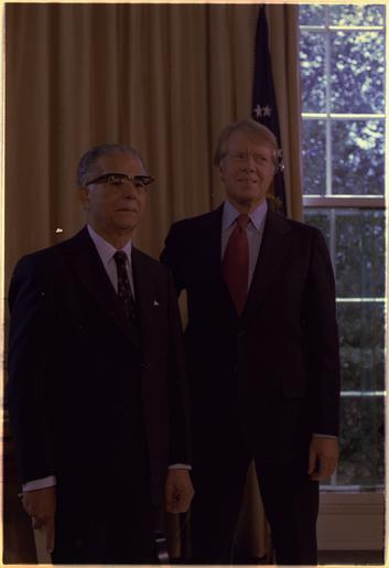 Keywords: Jimmy Carter with Joaqin Balaguar President of the Dominican Republic - NARA - 176137.tif Scope and content General notes 176137 Local identifier President 1977-1981 Carter White House Staff Photographers 01/20/1977 - 01/20/1981 Jimmy Carter Library NLJC 441 Freedom Parkway Atlanta GA 30307-1498 1977-09-08 Record group Collection JC-WHSP Carter White House Photographs Collection 01/20/1977 - 01/22/1981 Record group ARC 1120 Carter White House Photographs Presidential compiled 01/20/1977 - 01/22/1981 Series ARC 173341 File unit 1-12 His Excellency General Hugo Banzer Suarez President of the Republic of Bolivia; 14-21 His Excellency Dr Joaquin Balaguar President of the Dominican Republic; 22-28 His Excellency General Carlos Humberto Romero President of the Republic of El Salvador 09/08/1977 - 09/08/1977 File unit ARC 176136 Variant control numbers NAIL Control Number NLC-WHSP-C-02664-17A yes Other versions NARA-cooperation PD-USGov JoaquĆn Balaguer Jimmy Carter |