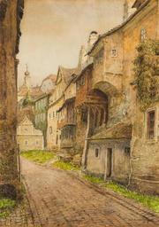 Keywords: Jindrich Bubenicek Gasse in Cesky Krumlov 1926.jpg Gässchen in Krumlov/Böhmisch Krumau rechts unten signiert und datiert Jindř Bubeníček 1926 Aquarell/Papier 60 x 45 cm http //www dorotheum com Dorotheum 1926 Jindřich Bubeníček 1856-1935 PD-old-70 Images from Dorotheum History of Český Krumlov Jindřich Bubeniček |