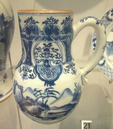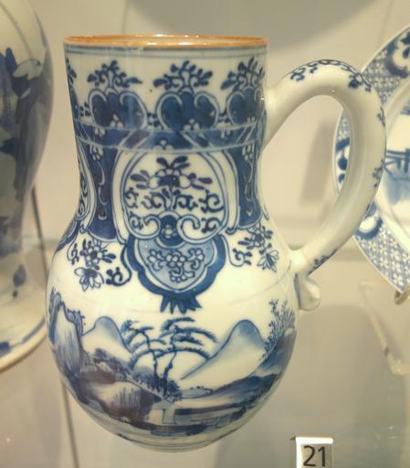Keywords: Jingdezhen tankard of European form, China, Qing dynasty, c. 1680-1722, porcelain, underglaze blue - Royal Ontario Museum - DSC03809.JPG en Exhibit in the Royal Ontario Museum Toronto Ontario Canada This work is old enough so that it is in the public domain Photography was permitted in the museum without restriction 2013-10-08 13 58 07 own Daderot cc-zero Jingdezhen porcelain in the Royal Ontario Museum Uploaded with UploadWizard |
