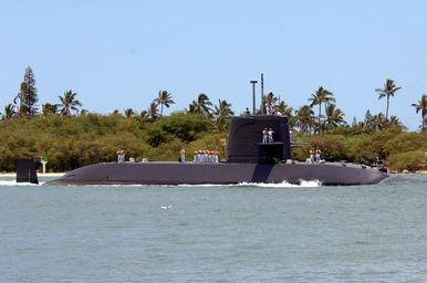 | Keywords: JMSDF submarine Narushio.jpg Das japanische U-Boot JS Narushio SS-595 beim Einlaufen in Pearl Harbor im Vorfeld des Seemanövers Rim of the Pacific RIMPAC 2008 The Japanese Maritime Self Defense Force submarine JS Narushio SS-595 pulls into Pearl harbor for a scheduled port call before starting Rim of the Pacific RIMPAC 2008 080626-N-3931M-166 Navy http //www navy mil/view_image asp id 60740 Michael R McCormick U S Navy 2008-06-26 PD-USGov-Military-Navy JS Narushio SS-595 Japanese warships at Pearl Harbor |