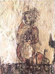 Keywords: Joan Of Arc 2.jpg accession number object history credit line Fresco of two young women one a peasant girl at prayer the other dressed in male attire possible depictions of Joan of Arc rediscovered underneath a later work Joan of Arc was known to pray often at the site Between the panels of the cloak of Saint-Thiebaut appears a simple ex-voto The eyes are of blue azurite a process readily utilized in the Middle Ages The young girl is kneeling doubtless in a chateau because the ground is not the beaten earth of the houses of the era but a green and black tile-flooring She is dressed in grey with high hose an attire of a man Thence to think that it has to do with the departure from Vaucouleurs or arrival at Chinon there is not but to take a step; to prove it is another thing Hermitage of Notre-Dame de Bermont PD-art Paintings of Jeanne d'Arc Chapelle de Bermont Kneeling in prayer in art |