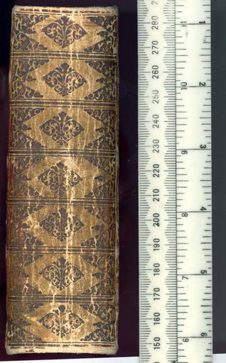 Keywords: Joannis Barclaii Argenis, figuris aeneis adillustrata, suffixo clave, hoc est nominum propriorum explicatione, atque index locupletissimo. (Noribergae - impensis B.W.M. Endteri consortium, e - Spine (RB23a28487).jpg Style Peasant floral coloured vellum; Caption Spine; Colour White / cream; Edge Unspecified exhibition history Decorative Technique Tooled in blind Tooled in alloy frequently gold and silver zwischen gold ; Cover Material Parchment For details see upper cover object history Text 1740; Unspecified; Unspecified object type Cc-zero place of creation Binding Germany place of discovery Unspecified British Library image http //www bl uk/catalogues/bookbindings/LargeImage aspx RecordId 020-000011478 ImageId ImageId 45344 Copyright BL Joannis Barclaii Argenis figuris aeneis adillustrata suffixo clave hoc est nominum propriorum explicatione atque index locupletissimo Noribergae impensis B W M Endteri consortium et vid B Jul Arnold Engelbrechti ca 1740 Uploaded with GWToolset Joannis Barclaii Argenis figuris aeneis adillustrata suffixo clave hoc est nominum propriorum explicatione atque index locupletissimo Noribergae impensis B W M Endteri consortium e - Spine RB23a28487 http //www webarchive org uk/bldatasets/bindings/12409_3 jpg Bookbinding 18th-century bookbinding British Library Bookbindings |