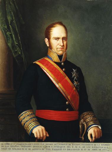 Keywords: Joaquin Blake.jpg Retrato del militar español de ascendencia irlandesa Joaquin Blake y Joyes 1759-1827 Esta obra es una copia del retrato original conservado en la Dirección del Estado Mayor y el retratado luce las grandes cruces y las bandas de la Orden de San Fernando y de la Orden de San Hermenegildo 1880 Oil on canvas Size cm 89 120 Institution Museo del Prado Depositado en la Institution Real Academia de la Historia https //content3 cdnprado net/imagenes/Documentos/imgsem/b0/b001/b001b894-4d14-4e5e-a8ef-f1fad4650716/ae4bc0ef-603b-4327-86f5-26689276ef72 jpg https //www museodelprado es/coleccion/obra-de-arte/el-general-joaquin-blake-y-joyes-copia/b001b894-4d14-4e5e-a8ef-f1fad4650716 accession number P03429 PD-old-100 other versions Joaquín Blake y Joyes Manuel Ojeda y Siles 19th-century portrait paintings in the Prado Museum Galería de españoles ilustres Museo del Prado Portrait paintings in the Royal Academy of History People of Málaga in art 1880 portrait paintings from Spain |