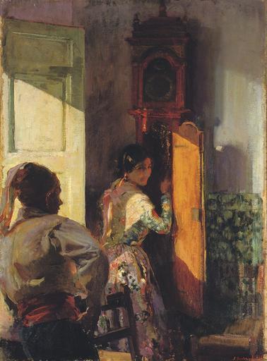 Keywords: Joaquín Sorolla y Bastida - Dando Cuerda.jpg Artwork Creator Joaquín Sorolla Winding the clock ca 1885-1899 oil cardboard canvas cm 78 8 58 4 object history credit line signed 'J Sorolla y Bastida' lower right accession number Christie's online 5171796 PD-old-auto 1923 Paintings of women by Joaquín Sorolla People with clocks in art |