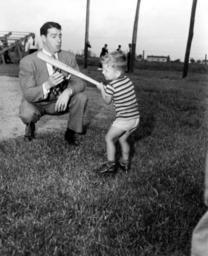 Keywords: baseball joe dimaggio joedimaggio florida man boy sports state library and archives of florida statelibraryandarchivesofflorida larry valencourt larryvalencourt west palm beach, florida westpalmbeachflorida athletes west palm beach westpalmbeach new york yankees newyorkyankees blackandwhite monochrome outdoor black and white Local call number: C009044   Title: [New York Yankee Joe DiMaggio showing 3 year old Larry Valencourt how to hold a bat : West Palm Beach, Florida]   Date: Photographed on January 13, 1948.   Physical descrip: 1 photoprint : b&w ; 10 x 8 in.   Series Title: (Department of Commerce collection)   General Note: Photographed at Bill McGowan's Umpire School in West Palm Beach.   Repository: State Library and Archives of Florida, 500 S. Bronough St., Tallahassee, FL 32399-0250 USA. Contact: 850-245-6700. Archives@dos.state.fl.us   Persistent URL: www.floridamemory.com/items/show/68211 Local call number: C009044   Title: [New York Yankee Joe DiMaggio showing 3 year old Larry Valencourt how to hold a bat : West Palm Beach, Florida]   Date: Photographed on January 13, 1948.   Physical descrip: 1 photoprint : b&w ; 10 x 8 in.   Series Title: (Department of Commerce collection)   General Note: Photographed at Bill McGowan's Umpire School in West Palm Beach.   Repository: State Library and Archives of Florida, 500 S. Bronough St., Tallahassee, FL 32399-0250 USA. Contact: 850-245-6700. Archives@dos.state.fl.us   Persistent URL: www.floridamemory.com/items/show/68211