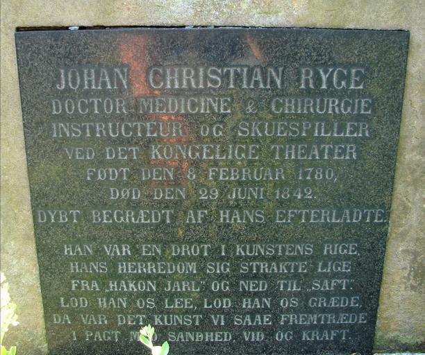 Keywords: Johan Christian Ryge (2).JPG Johan Christian Ryge 1780-1842 DOCTOR MEDICINE CHIRURGIE INSTRUCTEUR OG SKUESPILLER VED DET KONGELIGE TEATER Holmens Kirkegård København own 2011-07 Orf3us Johan Christian Ryge Holmens Kirkegård