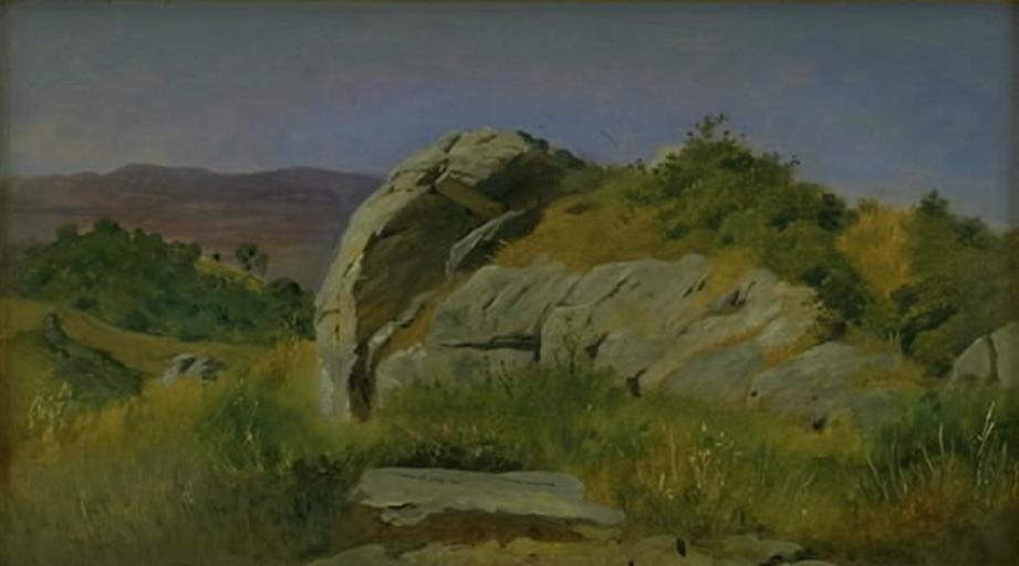 Keywords: Johan Thomas Lundbye - Landskab med klippe i forgrunden. Civitella.jpg Artwork Creator Johan Thomas Lundbye 1845 Oil on canvas 23 3 x 41 cm Institution Statens Museum for Kunst Copenhagen accession number object history credit line Landscape art Statens Museum for Kunst PD-old-100 Romantic landscape paintings Danish paintings in Statens Museum for Kunst Johan Thomas Lundbye |