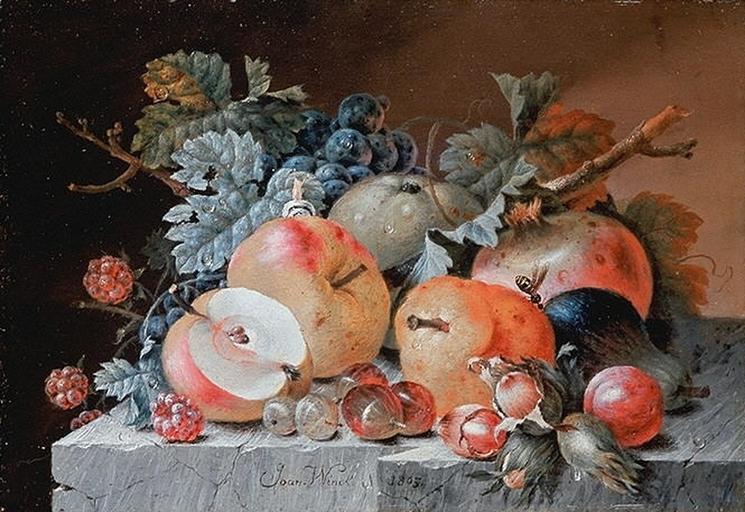 Keywords: Johann Amandus Winck - Stillleben.jpg Artwork Creator Johann Amandus Winck 1803 oil copper cm 21 3 30 2 Institution Wallraf-Richartz-Museum object history Das Bild wurde 1963 mit der Sammlung Hans Lückger Köln für das Wallraf-Richartz-Museum erworben credit line Signatur Joan Winck 1803 Anbringungsort unten Mitte accession number WRM 3173 05010956 PD-old-100 Johann Amandus Winck Paintings in the Wallraf-Richartz-Museum Still life paintings of fruits 1800s still-life paintings 1803 paintings Images from Bildarchiv Foto Marburg