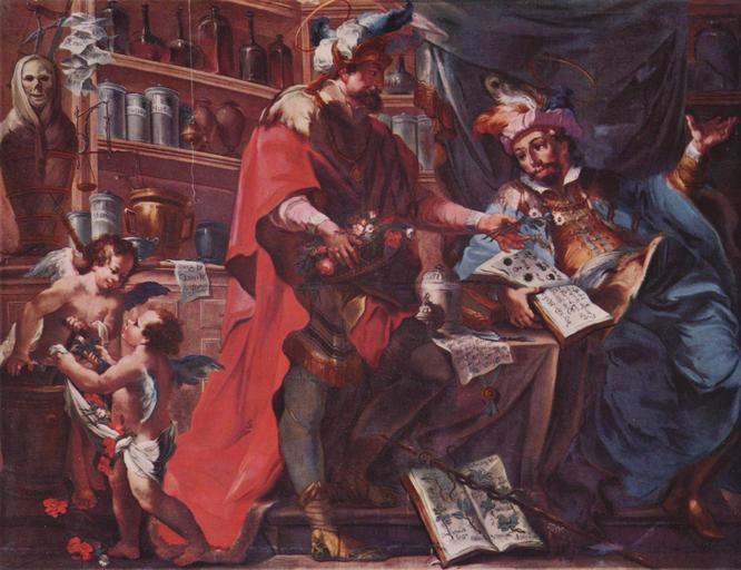 | Keywords: Johann Anwander 001.jpg Artwork de Hll Cosmas und Damian als Ärzte oil on canvas cm 182 240 de Dillingen Donau de Studienkirche Maria Himmelfahrt The Yorck Project 10 000 Meisterwerke der Malerei DVD-ROM 2002 ISBN 3936122202 Distributed by DIRECTMEDIA Publishing GmbH 1762 Creator Johann Anwander http //mail wikipedia org/pipermail/wikide-l/2005-April/012195 html Other versions PD-old-100 PD-Art-YorckProject Johann Anwander Baroque paintings Pharmacies in art Paintings of Saints Cosmas and Damian Balance scales in art 1762 paintings Studienkirche Mariä Himmelfahrt Dillingen an der Donau Males with flowers in art People in rooms in art Humans with putti Feathered headdresses in art male |