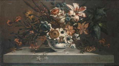 Keywords: Johann Baptiste Bouttats - Flowers in a porcelain bowl.jpeg Artwork Creator Johann Baptiste Bouttats en Flowers in a porcelain bowl 1721 https //www bonhams com/auctions/17954/lot/250/ Bonhams Oil canvas cm 58 101 5 object history Private collection Bermuda<br/>Sold at Bonhams London 27 October 2010 lot 250 JBBouttats 1721 on ledge ~ lower right signature / date Other versions PD-old-100 DEFAULTSORT Bouttats Johann Baptiste; Still-life 1721; Bonhams 2010 Johann Baptiste Bouttats 18th-century still life paintings of flowers Images from Bonhams
