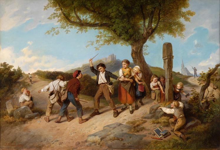 | Keywords: Johann Grund Die kleinen Streithähne 1867.jpg Die kleinen Streithähne Signature 1867 date oil on canvas 70 x 100 cm http //www duesseldorfer-auktionshaus de/ 1867 Johann Grund 1808 “1887 PD-old-100 Images from Düsseldorfer Auktionshaus Johann Grund Children in art Children in action 1867 paintings Paintings of country roads |
