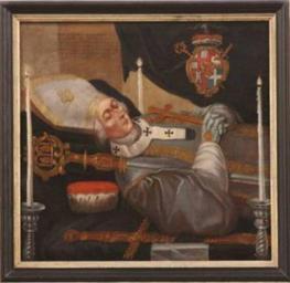 | Keywords: Johann Hugo von Orsbeck aufgebahrt.jpg  de Fürstbischof Johann Hugo von Orsbeck Webseite über Bischof Orsbeck http //gemeinden erzbistum-koeln de/pfarrverband_weilerswist/kirchen/heilig_kreuz/johann_hugo_von_orsbeck/ zeitgenössischer Maler 1711 PD-old-100 Johann Hugo von Orsbeck Coats of arms of archbishops of the Roman Catholic Diocese of Trier Derivatives of the Coat of arms of Prüm Abbey Derivatives of the Coat of arms of Speyer diocese Derivatives of the Coat of arms of Trier diocese Derivatives of the Coat of arms of Weißenburg priory Ermine headgear in art Clerics with ermine garment |