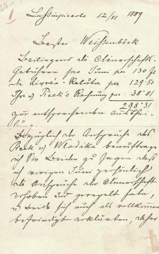 | Keywords: Johann Orth Brief 1889 p1.jpg Brief von Johann Orth Erzherzog Johann Nepomuk Salvator an den Verwalter von Schloss Ort Anton Weissenböck Lussin-Piccolo Dalmatien 12 Juni 1889 1 von 2 Seiten Bester Weissenböck Beiliegend die Dienerschaftsgebühren pro Juni Den unterfertigten Gebühren-Ausweis werden Sie mir unter Adresse Johann Graf Orth Yacht Nair Pola poste restante rücksenden http //www dorotheum com Dorotheum 1889-06-12 Johann Orth Johann Salvator von Österreich PD-old-100 Images from Dorotheum Archduke Johann Salvator of Austria 1889 letters Letters of Austria |