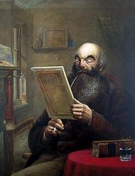 | Keywords: John Burton (1799-1882), Gallery benefactor YORAG-382.jpg Artwork John Burton sits contemplating a painting he holds in his hand He is smoking a long clay pipe He has a big beard and bald head There are several other paintings around him 1843 - 1882 Technique oil canvas Size cm 88 113 Institution York Art Gallery Fine Art object history exhibition history credit line York Museums Trust York Art Gallery place of creation York Museums Trust image accession number YORAG 382 PD-old-100 Paintings in the York Art Gallery Uploaded with UploadWizard John Windass Portraits of men at three-quarter length |