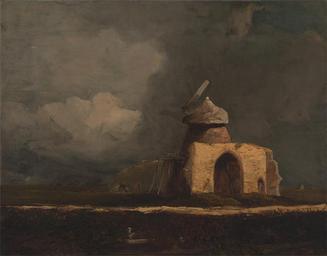 Keywords: john cotman painting oil on canvas artistic nature outside sky clouds landscape windmill buildings