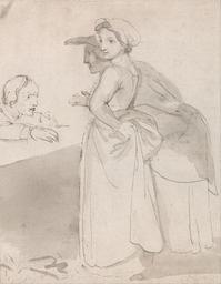 | Keywords: John Flaxman - Two Women Talking to a Man at a Counter - Google Art Project.jpg Inscribed in graphite lower right 15 Inscription _Signed_and_Dated Not signed not dated Not on View Gray ink brown ink gray wash and graphite on medium slightly textured cream wove paper women discussion man counter hats dresses jackets genre subject special url_id 4QGotbMcAfivMQ PD-old-100-1923 1826 John Flaxman Google Art Project works by John Flaxman Drawings of standing women | ||||