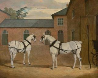 Keywords: John Frederick Herring - Grey carriage horses in the coachyard at Putteridge Bury, Hertfordshire - Google Art Project.jpg No inscription Inscription _Signed_and_Dated Signed and dated lower left J F Herring 1838 Not on View Oil on canvas animals equestrian horses animals riding horseback riding harness sporting art special url_id ogHRw4_nCyT0fw PD-old-100-1923 1865 Google Art Project works by John Frederick Herring John Frederick Herring Sr 1838 paintings 19th-century paintings of horses Paintings of white horses Paintings in the Yale Center for British Art