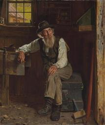 Keywords: John George Brown - Living in the Past.jpg between 1896 1897 Oil on canvas cm 76 2 63 5 object history provenance Oren Cheney Sandborne Winchester Massachusetts; Rena Armstrong Sandborne Winchester Massachusetts; Private collection; Christie's New York 3 December 1982 lot 50; Private collection; Mr and Mrs Eddy Nicholson; Christie's New York 27 January 1995 lot 828; Private collection; Private collection Maryland; Estate of the above credit line signed and inscribed 'copyright/J G Brown N A ' lower left accession number Christie's online 5599587 PD-old-auto-1923 1913 John George Brown 1896 portrait paintings 1897 oil on canvas paintings 19th-century oil paintings of sitting men at full length Paintings of men wearing hats |