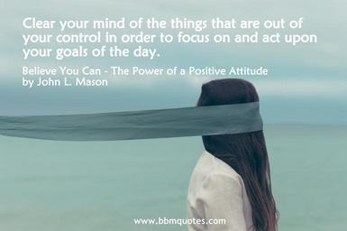 Keywords: control focus goals quotes qutoe outdoor Believe You Can – The Power of A Positive Attitude by John L. Mason | Clear your mind of the things that are out of your control in order to focus on and act upon your goals of the day. www.bbmquotes.com/john-l-mason-clear-your-mind-and-focus-... Believe You Can – The Power of A Positive Attitude by John L. Mason | Clear your mind of the things that are out of your control in order to focus on and act upon your goals of the day. www.bbmquotes.com/john-l-mason-clear-your-mind-and-focus-... |