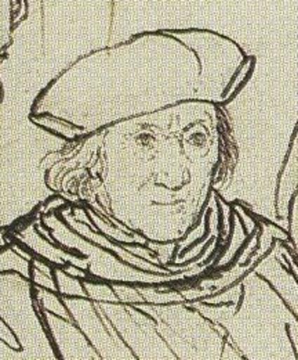Keywords: John More, Detail of Study for portrait of the More family, by Hans Holbein the Younger.jpg Thomas More now lost thought to be the first life-sized group portrait north of the Alps The painted work was copied several times ”by the artist Rowland Lockey c 1565-1616 among others ”though differences between the copies and this sketch suggest that intervening versions may have existed adjusted in response to changes in the English church after the original was painted More was executed in 1535 for his opposition to Henry VIII's religious reforms <br> <br>The astronomer Nicholas Kratzer 1487 “1550 a friend of Holbein and More and the tutor of More's children added the names and ages of the sitters in Latin on the sketch in brown ink On the left is Elizabeth Dauncy More's second daughter; beside her is his adopted daughter Margaret Giggs explaining a point to Thomas More's father John More; Thomas More himself sits in the centre with the engaged couple Anne Cresacre and his only son John More on either side of him; beside John More is the household fool Henry Patenson; on the right of the picture are More's youngest daughter Cecily Heron and his eldest daughter Margaret Roper; More's second wife Alice is kneeling on the extreme right <br> <br/>Holbein also drew individual portraits in preparation for the composition seven of which have survived as well as painting an individual portrait of Thomas More in a similar pose Some scholars believe that the sketch was sent to More's friend the humanist scholar Desiderius Erasmus who had recommended Holbein to him and who praised the piece; another view is that More sent Erasmus a version of the actual painting References Buck 53; Christian MĂĽller; Stephan Kemperdick; Maryan W Ainsworth; et al Hans Holbein the Younger The Basel Years 1515 “1532 Munich Prestel 2006 ISBN 3791335804 pp 370 “74; Derek Wilson Hans Holbein Portrait of an Unknown Man London Pimlico Revised Edition 2006 ISBN 9781844139187 pp 157 “58 1527 Stephanie Buck Hans Holbein Cologne Könemann 1999 ISBN 3829025831 Creator Hans Holbein d J other versions x100px x100px PD-old-100 Original upload log page en wikipedia John_More 2C_Detail_of_Study_for_portrait_of_the_More_family 2C_by_Hans_Holbein_the_Younger jpg 2010-03-28 03 26 Witgood 216Ă—260Ă— 44562 bytes <nowiki> en Detail of Sir John More from Study for the Family Portrait of Thomas More Pen and brush in black on top of chalk sketch 38 9 Ă— 52 4 cm Kupferstichkabinett Ă–ffentliche Kunstsammlung Ba</nowiki> Uploaded with UploadWizard Family of Sir Thomas More by Hans Holbein der JĂĽngere More John the Elder sketch |
