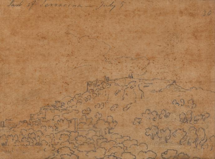 | Keywords: John Robert Cozens - Part of Terracina, July 5 - Google Art Project.jpg Inscribed in graphite upper left Part of Terracina - July 5 ; in graphite upper right 30 ; in graphite lower left sea 145 Inscription _Signed_and_Dated not signed Not on View Graphite and varnish on thin slightly textured beige laid paper clouds hills trees buildings landscape special url_id oQGKAuHGlLO8lA PD-old-100-1923 1799 Lazio in art by John Robert Cozens Google Art Project works by John Robert Cozens | ||||