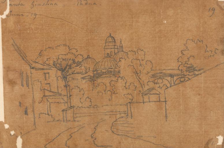 Keywords: John Robert Cozens - Santa Giustina, Padua, June 19 - Google Art Project.jpg Inscribed in graphite upper left Santa Giustina - - Padua June - 19 ; in graphite upper right 19 ; in graphite lower left 111 ; in graphite lower right B 1 Inscription _Signed_and_Dated not signed Not on View Graphite and varnish on thin slightly textured beige laid paper architectural subject domes walls spires trees cityscape landscape special url_id tAEhVHtWMfraJQ PD-old-100-1923 1799 Italy in art by John Robert Cozens Google Art Project works by John Robert Cozens |