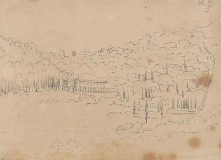 | Keywords: John Robert Cozens - View of a Villa - Google Art Project.jpg Inscribed in graphite uper right KK 5 ; in graphite lower left 27 Inscription _Signed_and_Dated not signed Not on View Graphite on thin slightly textured cream laid paper Grand Tour villas trees landscape special url_id zQFJ_zZysj9EPw PD-old-100-1923 1799 Italy in art by John Robert Cozens Google Art Project works by John Robert Cozens Unidentified locations in Italy in art Unidentified locations in Tuscany | ||||
