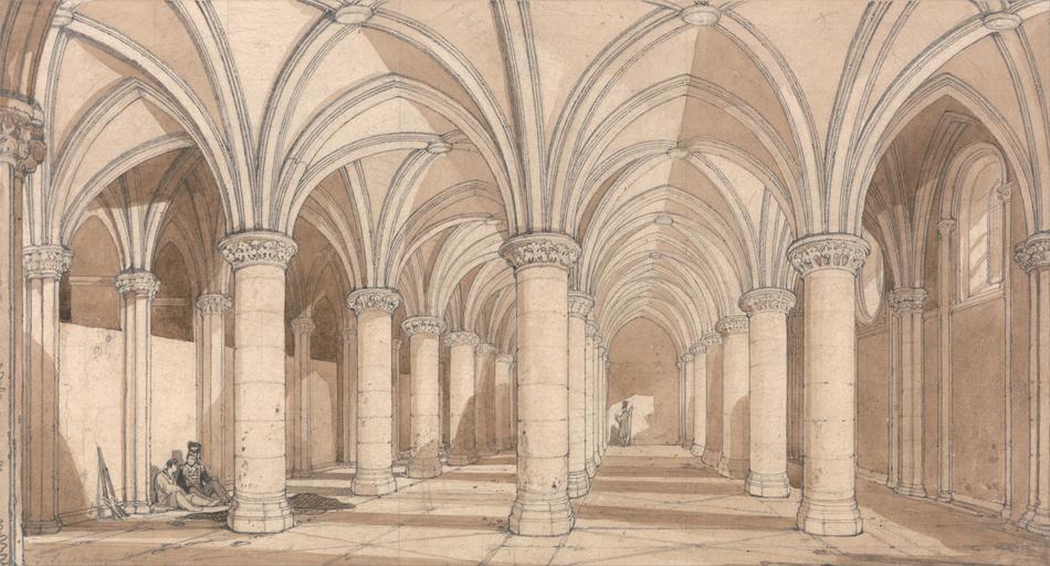 Keywords: John Sell Cotman - The Barons' Hall, Mont Saint Michel - Google Art Project.jpg no inscription Inscription _Marks Collector's mark RIBA blind embossed stamp Inscription _Signed_and_Dated Signed and dated in graphite lower left J S Cotman 1820 Not on View Graphite and brown wash on medium slightly textured beige wove paper architectural subject special url_id jAHRriHdimofcw PD-old-100-1923 1842 Normandy by John Sell Cotman Google Art Project works by John Sell Cotman Mont Saint-Michel in art Knight's Hall of Mont Saint-Michel |