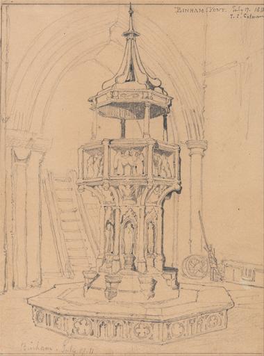 Keywords: John Sell Cotman - Font in Binham Church, Norfolk - Google Art Project.jpg Inscribed in graphite upper right BINHAM FONT July 17 1811 J S Cotman ; Lower left Binham July 17 11 ; in graphite verso lower center J S Inscription _Signed_and_Dated Signed and dated in graphite upper right July 17 1811 J S Cotman Not on View Graphite on medium moderately textured beige wove paper architectural subject font religious building fixture arch church ladder special url_id HQHgVm0-etDUrQ PD-old-100-1923 1842 John Sell Cotman Google Art Project works by John Sell Cotman Binham Priory interior |